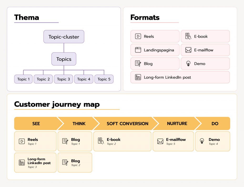 Benieuwd hoe zo’n contentcluster in de customer journey er precies uitziet? We geven je een voorbeeld: