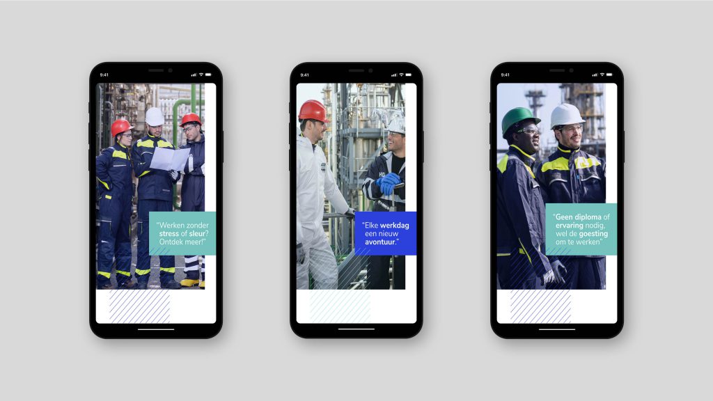 Na informeren komt overtuigen. Waarom moet iemand nu voor deze job kiezen? Een vraag waarop we gelukkig het antwoord klaar hadden. Zo kan iedereen bijvoorbeeld industrieel reiniger worden. Je hoeft geen diploma of ervaring te hebben, want je leert alle kneepjes van het vak simpelweg op de werkvloer. Daarnaast speelt de dagelijkse variatie, het toffe team waarin je als industrieel reiniger terechtkomt én het goed loon ook mee in dit verhaal. Als kandidaat voor deze job moet je vooral goesting hebben om te werken. Een heldere boodschap dus, die later ook duidelijk aansloeg in de advertenties.